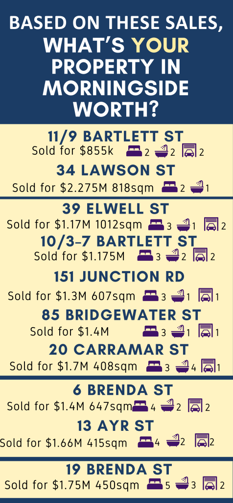 The 10 properties most recently sold in Morningside as of press time highlight just how widely prices can vary depending on dwelling type, land size and overall appeal.
